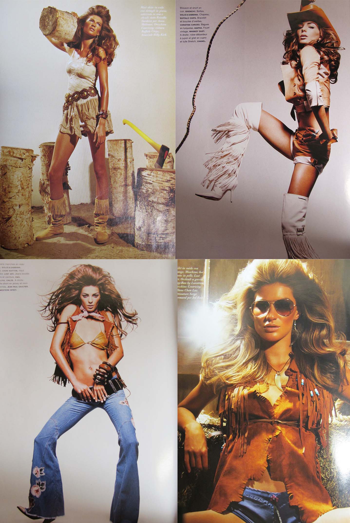 2011 Art Direction “Cow Girls” – インディアンスタイルとの融合 – Hollywoodで有数のワードローブのレンタル会社 “United American Costume”. 社長が西部劇の映画の主演で有名なJohn Wayneのスタイリストでした。 その影響で弊社には西部時代の衣装がたくさんストックされているので”Cow Girls”のテーマに合った衣装は勿論、アクセサリー等の小物が全て揃っていました。 レザー、アクセサリー、ダンガリーシャツ、デニムなど基本的なキーワードをベースに10種類のスタイリングを組み立てての撮影会となりました。 レザーをメインに重厚なスタイル、ダンガリーシャツとデニムのシンプルスタイルにアクセサリーで全体を整えるスタイルなどとCow Girlsをオシャレに現代版に蘇らせました。 1 2 3 4 5